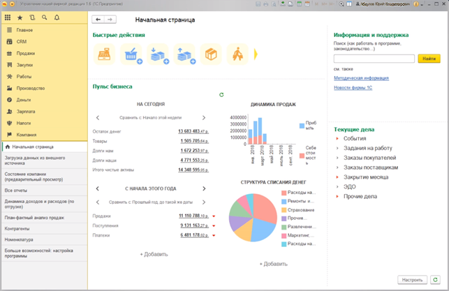 Специалисты нашей компании помогут в реализации данного функционала в вашей программе, мы создаем АРМы для различных категорий должностей – от линейных менеджеров до руководителей.Ниже представлены примеры типового АРМ в программе "Управление нашей фирмой".